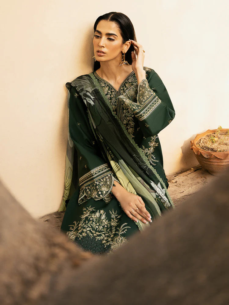 IZEL-3PC LAWN EMBROIDERED SHIRT WITH CHIFFOON PRINT DUPATTA AND EMB TROUSER-NC-2628